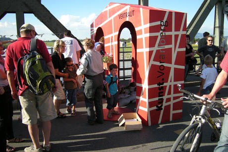 Dies ins Bewusstsein der PassantInnen zu rufen war die Message unserer Kunstaktion. Das Zollhäuschen, konzipiert und gestaltet von raumhochrosen, fungierte dabei als Gedankendepot, in dem PassantInnen aufgefordert wurden beim Passieren der Grenze symbolisch einen Gedanken „abzugeben“ bzw. lesbar zu hinterlassen.